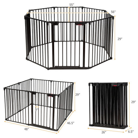 Adjustable Panel Baby Safe Metal Gate Play Yard-Black