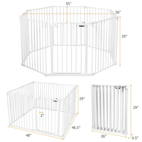 Adjustable Panel Baby Safe Metal Gate Play Yard-White