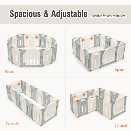 Foldable Baby Playpen 14 Panel Activity Center Safety Play Yard-Beige
