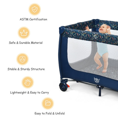 Portable Baby Playpen with Mattress Foldable Design-Blue