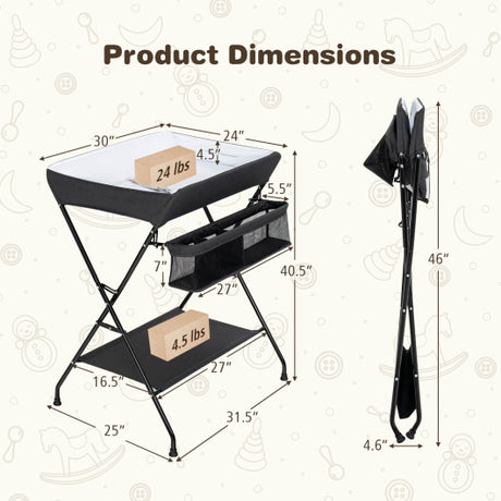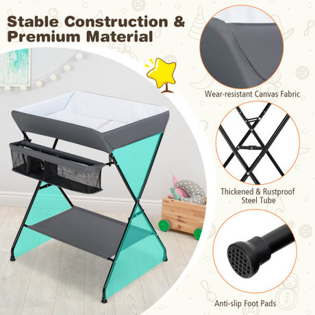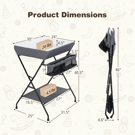 Portable Baby Changing Table with Storage Basket and Shelves-Gray