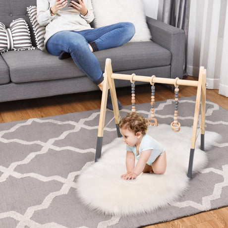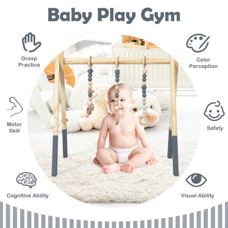 Portable 3 Wooden Newborn Baby Exercise Activity Gym Teething Toys Hanging Bar-Gray