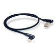 This 18-inch 90-degree male USB to 90-degree male Lightning cable, featuring fast charging transfer capabilities, is engineered to provide optimal power delivery and charging efficiency. The 90-degree connectors are specifically designed for convenient use in confined spaces.