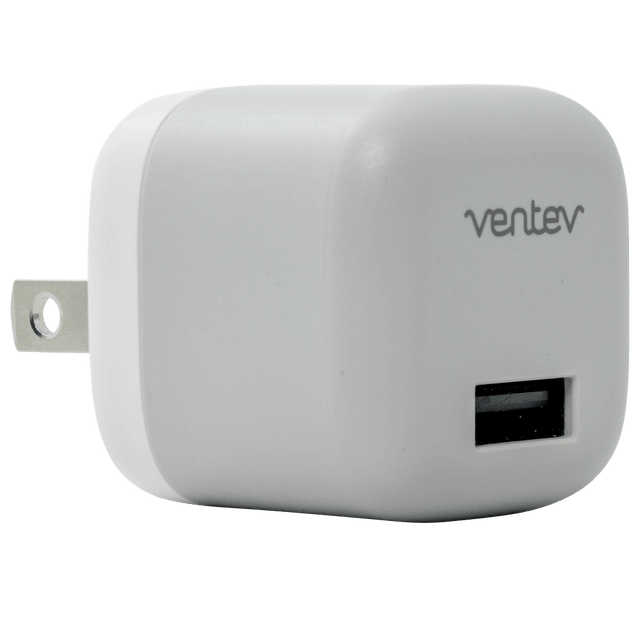 The Ventev 12W (5V, 2.4A) wall charger is the pocket-sized fast charger you've been looking for. Don't be fooled by itÕs small size. Charge your device 2x faster with the added security of our Limited Lifetime Warranty. Featuring a compact design, overcharge and short circuit prevention and folding prongs, this charger is great for travel.