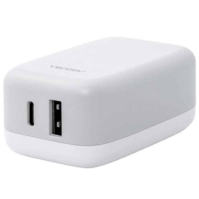 If you own a tablet and a phone, Ventev's dual-port USB-A+C 27W (15C, 12A) wall charger has you covered. Featuring a compact, power-strip-friendly design, this universal charger is perfect for keeping your devices charged and ready to go. Features folding prongs and short circuit/overcharge protecti