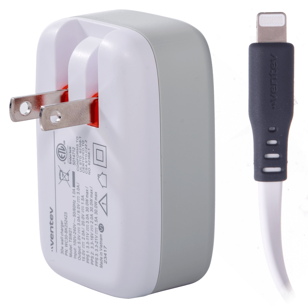 Ventev 30W Wall Charger and USB C to Apple Lightning Cable by Ventev