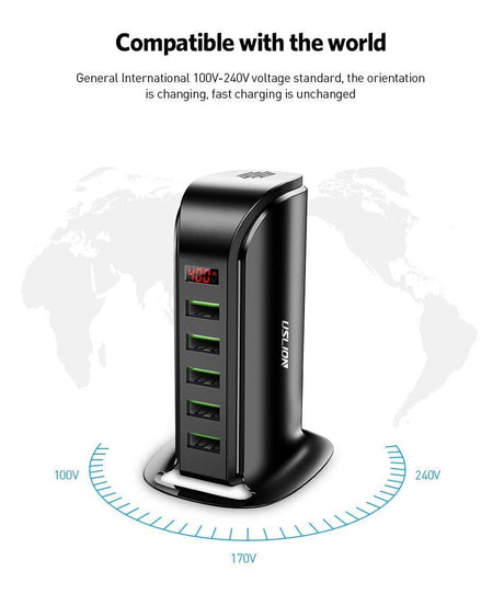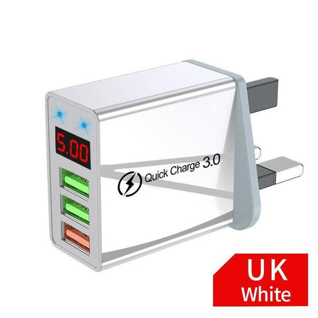 3 Ports Black USB Charger EU US Plug LED Display 3.1A Fast Charging Smart Mobile Phone Charger
