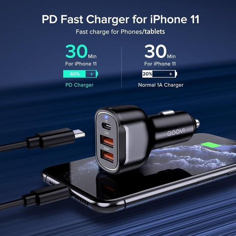 65W USB Car Charger Quick Charge QC4.0 QC3.0 Type C PD Fast Car Charging Portable Charger