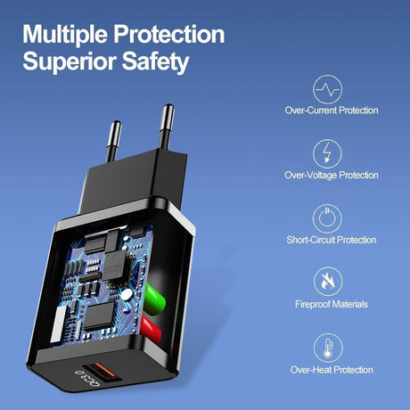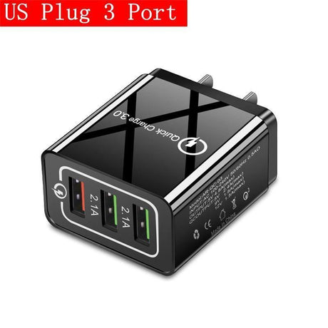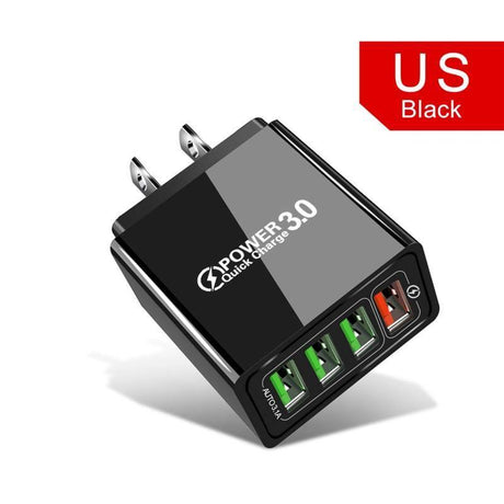 Modern Black 48W Quick Charger 3.0 USB Charge Plug Wall Mobile Phone Charger Adapter Fast Charging