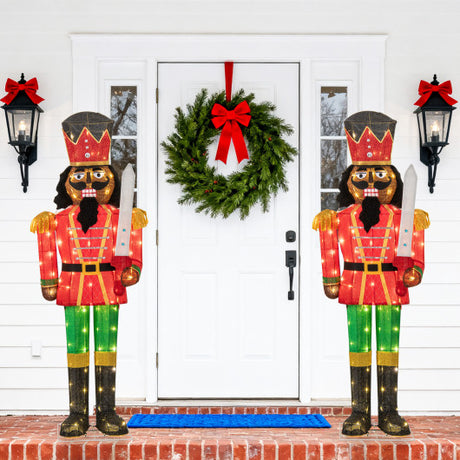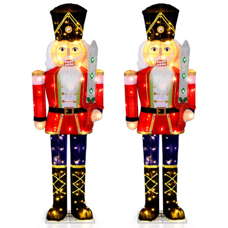 Set of 2 5 FT Lighted Nutcracker Soldier Outdoor Christmas Decoration with Glitter Sword