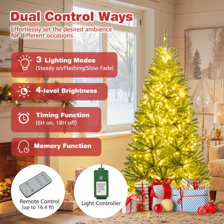 6/7/8 FT Pre-Lit Artificial Christmas Tree with Remote Control and LED Lights-7ft