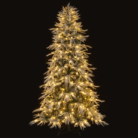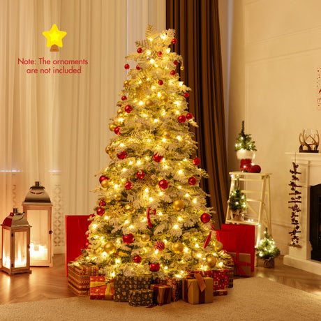 7 Feet Snow-flocked Artificial Christmas Tree Pre-lit Hinged Xmas Tree with Warm White LED Lights