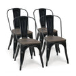 18 Inch Height Set of 4 Stackable Style Metal Wood Dining Chair-Black