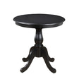 Make a statement with the 30" antique black round turned pedestal base wood dining table and infuse a dash of character and personality into your space. A black turned and carved pedestal base is finished off with a round tabletop surface, that is the epitome of quality construction and design. This dining table seats 2 people comfortably. This table is the sturdy, reliable and stylish answer to your dining room needs. This eye-catching dining table is ready for you to enjoy breakfast for one or entertain your guests. 30" H x 30" W x 30" D