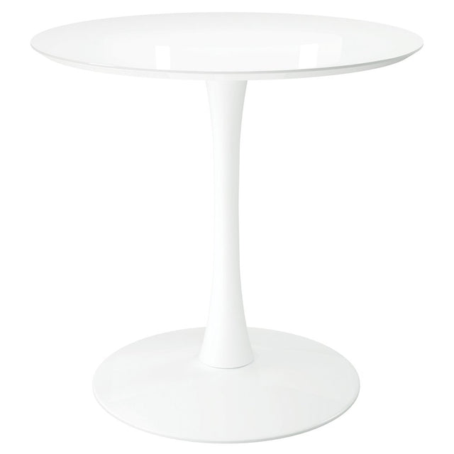 This good looking 32" white metal dining table is sure to inspire compliments. A white coloration runs throughout this good looking metal and manufactured wood table. A shiny and sheer gloss finish gives this table a bit of a modern and contemporary vibe. A beautiful pedestal base adds some dimension and elegance to your dining. Seat up to 2 family and friends around your new dining table. This table is the sturdy, reliable and stylish answer to your dining room needs. The dining table plays a central part in your home. This design is a great way for you to enjoy dining and entertaining in style. 30" H x 32" W x 32" D