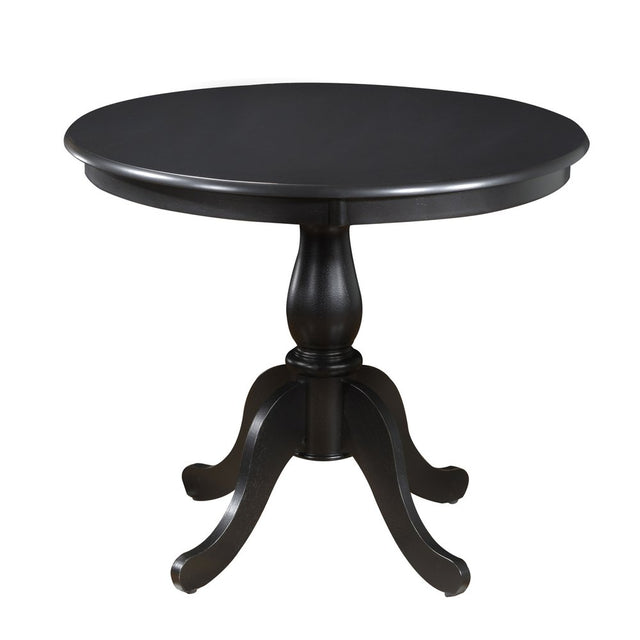 36" Black Rounded Solid Manufactured Wood And Solid Wood Pedestal Base Dining Table