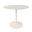 36" White Rounded Marble And Iron Pedestal Base Dining Table