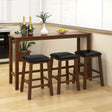4-Piece Bar Table Set Counter-Height Table and 3 PVC Leather Upholstered Bar Stools-Brown