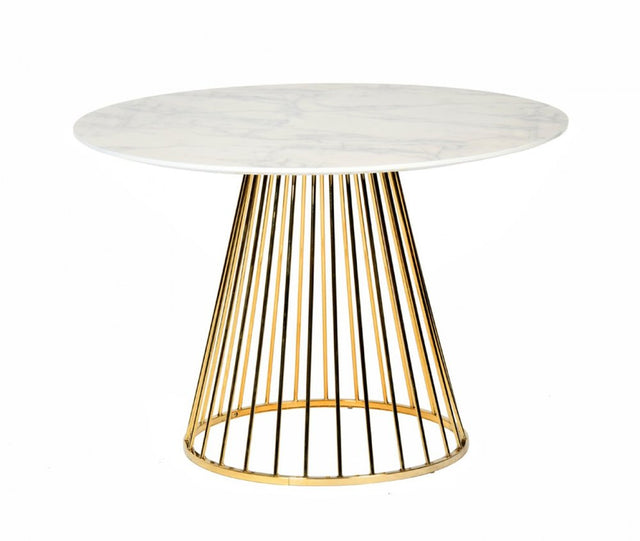 43" White And Gold Rounded Stainless Steel Pedestal Base Dining Table