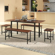 5 Piece Dining Table Set for 4-6 with 2 Benches & 2 Stools for Kitchen Dining Room-Walnut