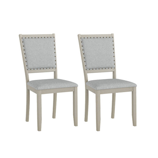 Farmhouse Dining Chair Set of 2 Fabric Upholstered Kitchen Chairs-Grey