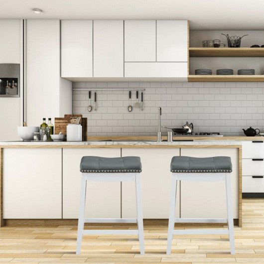 Set of 2 24-Inch Height Backless Counter Stool with Footrest-White