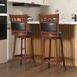 Wood Swivel Bar Stools Set of 2 with Faux Leather Upholstered Seat and Back-Brown