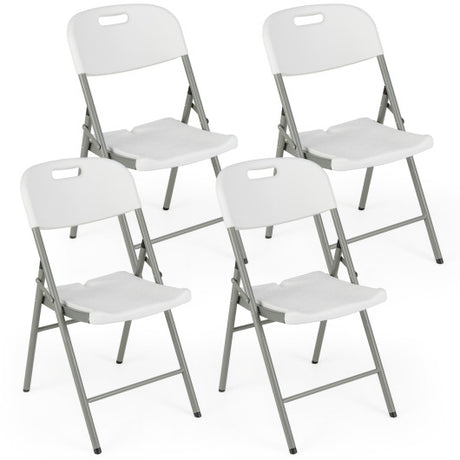 4 Pack Folding Stackable Chairs with Metal Frame and Carrying Handle-White