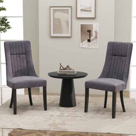 Channel Tufted Dining Chairs Set of 2 Upholstered Kitchen Side Chairs with High Backrest-Gray