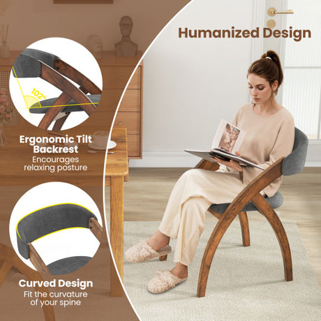 Upholstered Velvet Accent Modern Dining Chairs Set of 2 with Curved Backrests-Grey