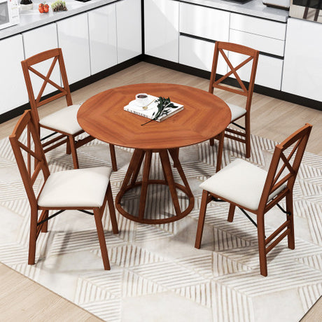 Folding Dining Chairs Set of 2 with Padded Seat and Rubber Wood Frame-B