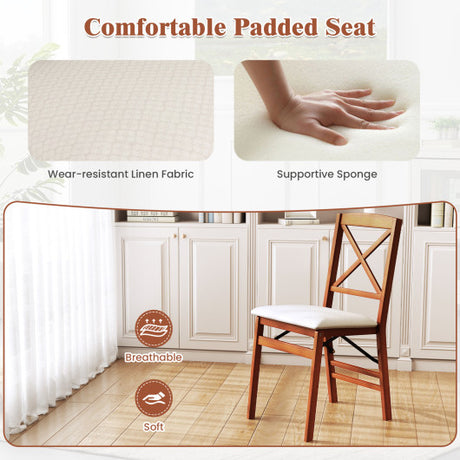 Folding Dining Chairs Set of 2 with Padded Seat and Rubber Wood Frame-A