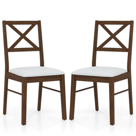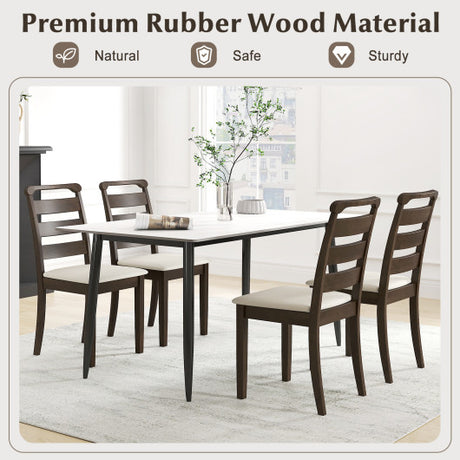 Wood Dining Chairs Set of 2 with Rubber Wood Frame and Padded Seat-Brown