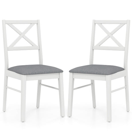 Upholstered Side Dining Chairs Set of 2 with Rubber Wood Frame-White