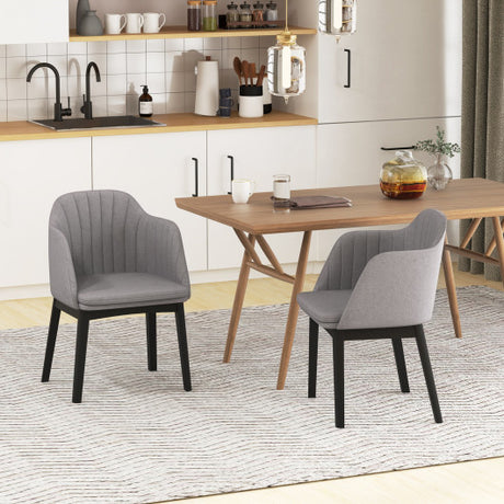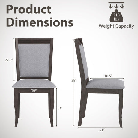 Upholstered Dining Chair Set of 2 with Padded Backrest and Seat-Gray