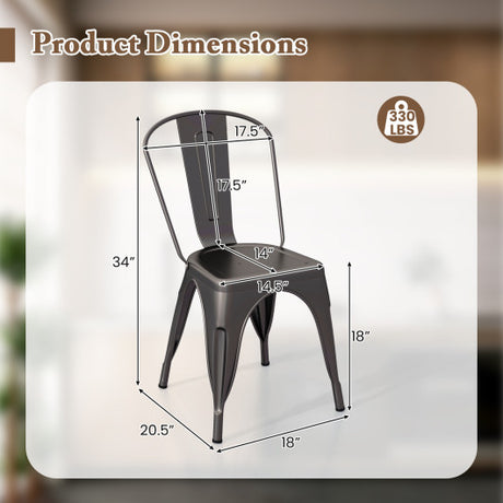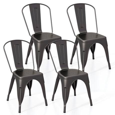 Metal Dining Chairs Set of 4 with Removable Backrest for Dining Room Restaurant Living Room-Gun