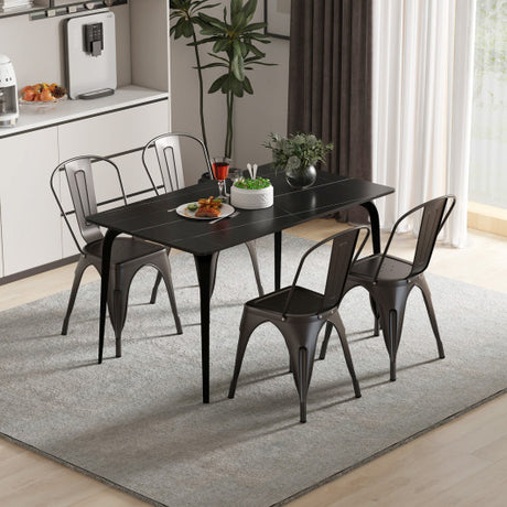 Metal Dining Chairs Set of 4 with Removable Backrest for Dining Room Restaurant Living Room-Black