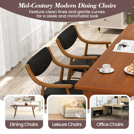 Wooden Dining Chair Set of 2 with Rubber Wood Frame Armrests and Padded Cushion-black
