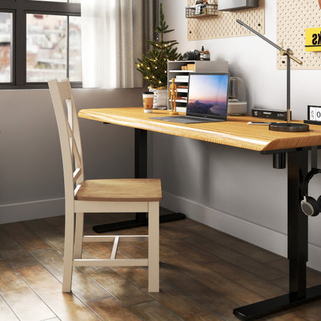 Farmhouse Kitchen Chair Set of 2 with Rubber Wood Frame-Natural