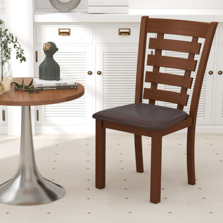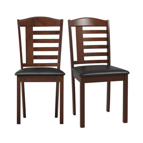 Set of 2 Wood Kitchen Chairs with Faux Leather Upholstered Seat-Coffee