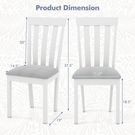Dining Chair Set of 2 Upholstered Wooden Kitchen Chairs with Padded Seat and Rubber Wood Frame-White