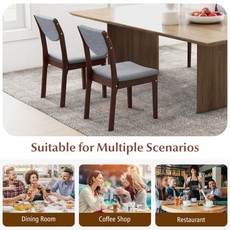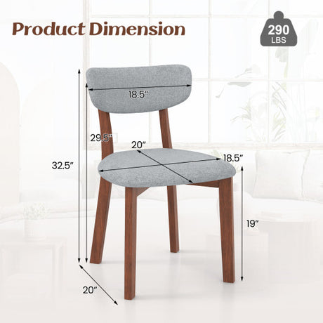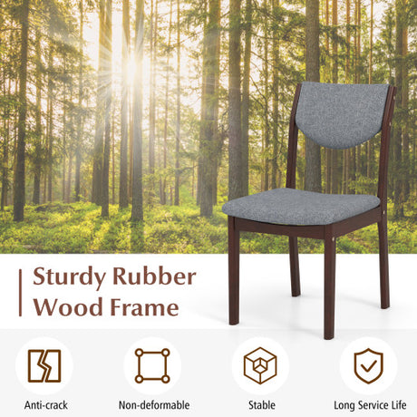 Dining Chairs Set of 2 Upholstered Mid-Back Chairs with Solid Rubber Wood Frame-Gray