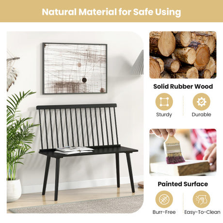 Entryway Bench for 2 with Spindle Back for Kitchen Dining Room Hallway-Black