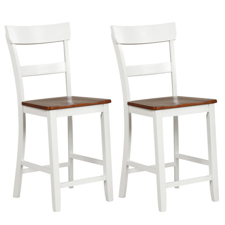 Farmhouse Dining Bar Stool Set of 2 with Solid Rubber Wood Frame-White
