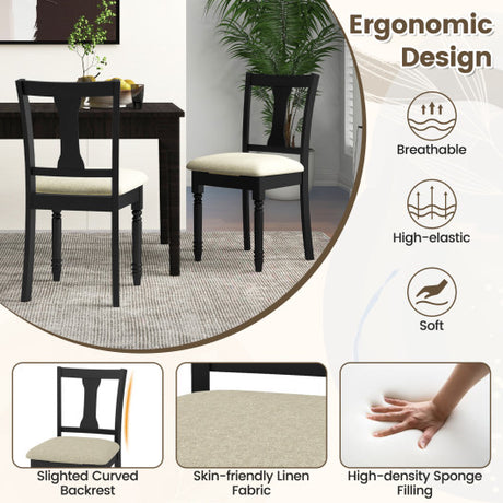 Set of 2 Wooden Kitchen Dining Chair with Padded Seat and Rubber Wood Legs-Black