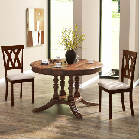 Set of 2 Wooden Farmhouse Kitchen Chairs with Rubber Wood Seat-2 Pieces