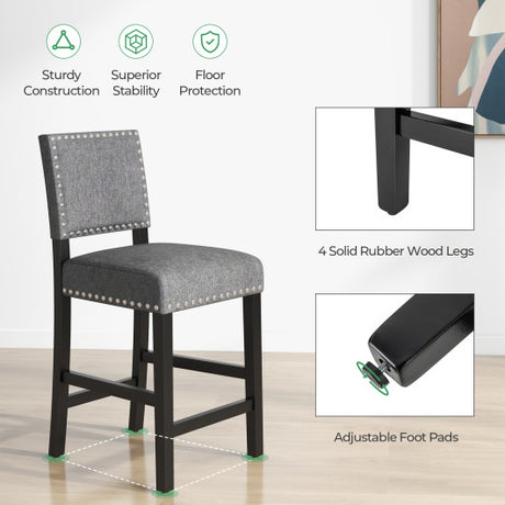 38.5/43.5 Inch Set of 2 Counter Height Chairs with Solid Rubber Wood Frame-S