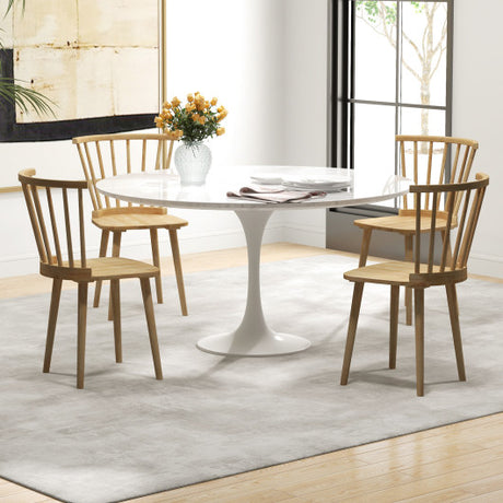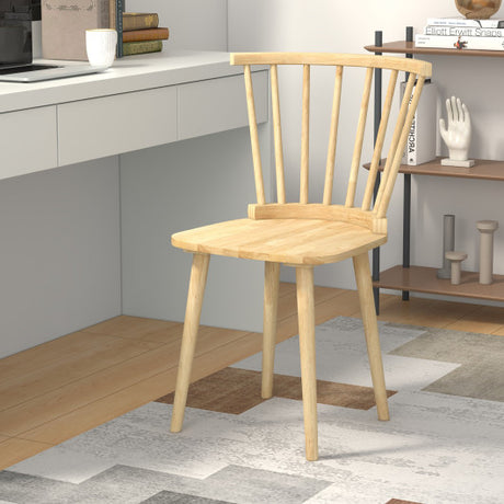 Windsor Dining Chairs Set of 2 Rubber Wood Kitchen Chairs with Spindle Back-Natural