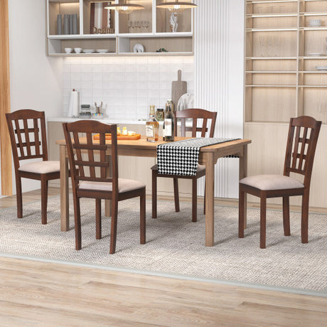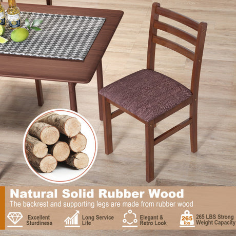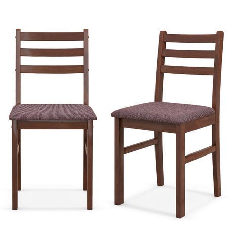 Wooden Dining Chairs Set of 2 with Upholstered Seat and Rubber Wood Frame-Brown