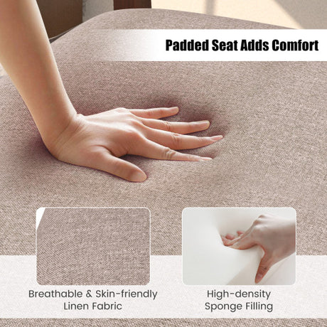 Set of 2 Wooden Folding Dining Chair with Linen Fabric Padded Seat and Backrest-Coffee
